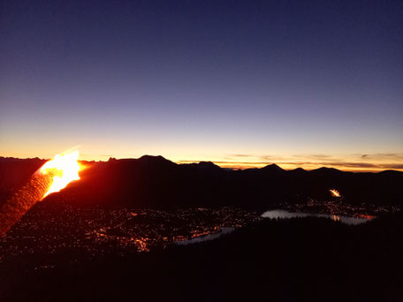 Mit der Dunkelheit steigen wir im Schein der Stirnlampen das Steiglein wieder hinunter,kehren auf breiten Wegen zurück ins Tal.